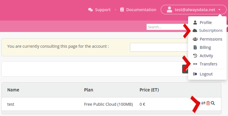 - the recipient profile is billed as soon as the transfer is accepted. A pro-rated reimbursement is automatically carried out on the issuer profile;