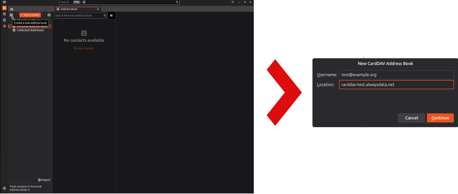 Go to Address Book > Create a new address book > Add a new CardDAV address book