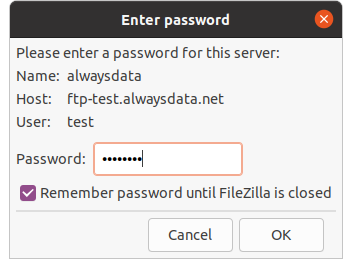In our example, we are using the account test and its primary FTP user. Replace it with your personal login information.