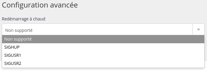 Pour les autres programmes, le champ Redémarrage à chaud vous permet de préciser quel signal envoyer à l’application.