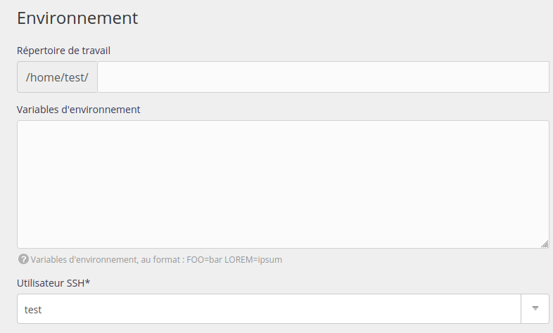 - Pour les tâches de type Commande, les versions de langages utilisées par défaut sont celles renseignées dans le menu Environnement de l’interface d’administration. Il est possible de choisir une autre version en utilisant les Variables d’environnement.
